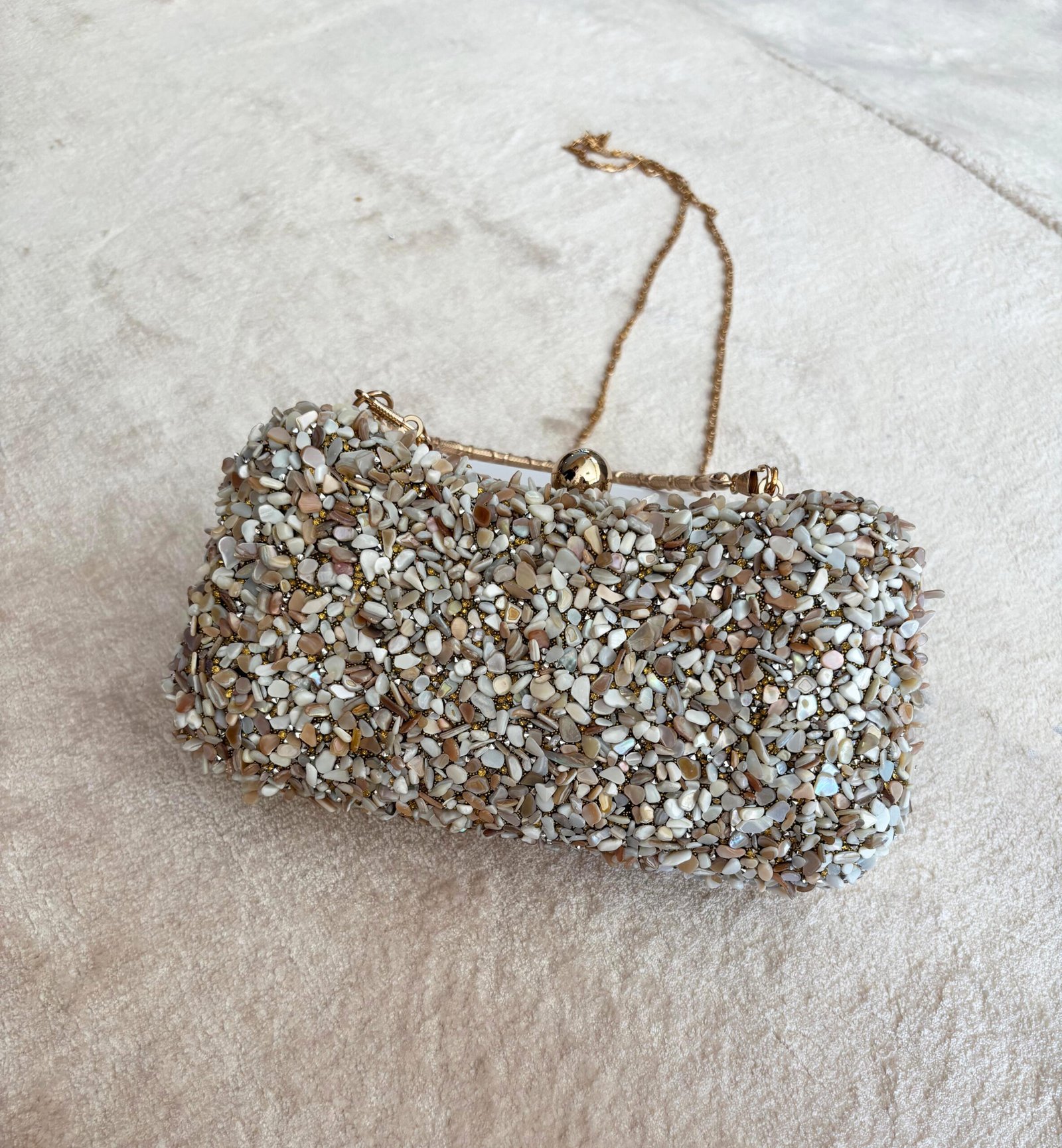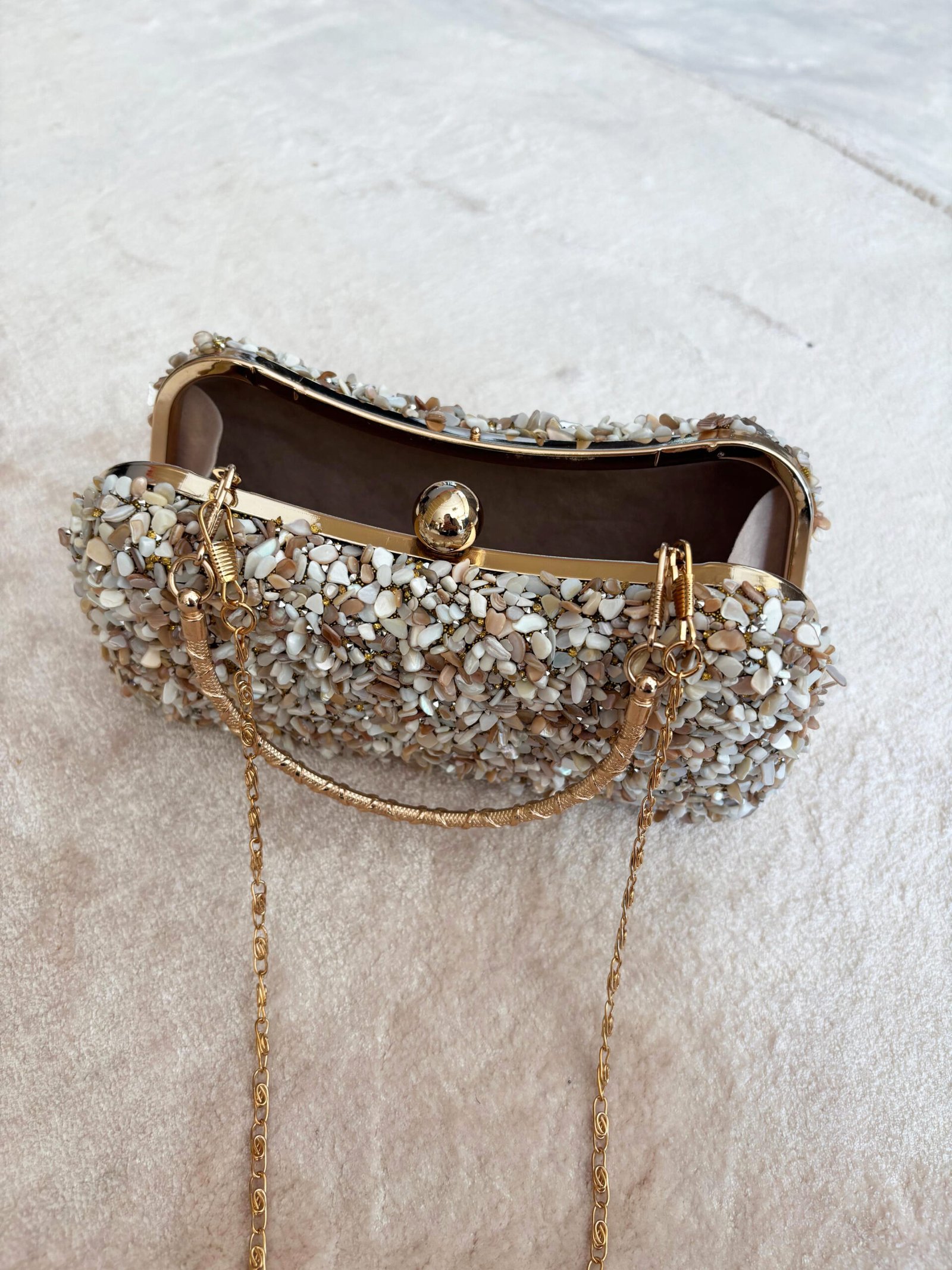 Βραδινό τσαντάκι με πέτρες και μακριά αλυσίδα αποσπώμενη