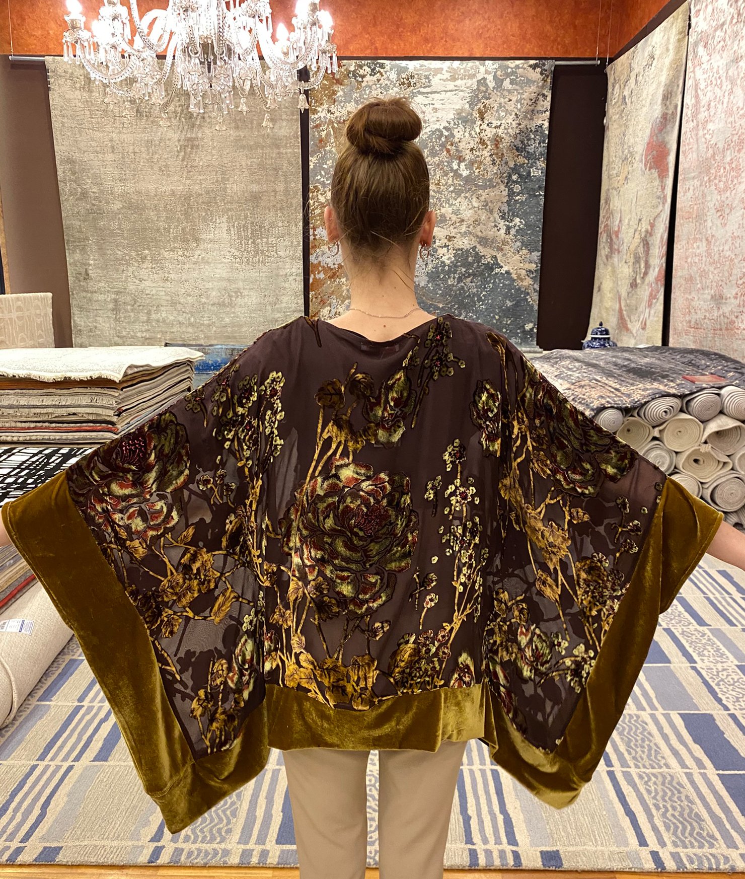 Μια κομψή χειροποίητη μπλούζα σε στυλ πόντσο από βελούδο ντεβορέ.