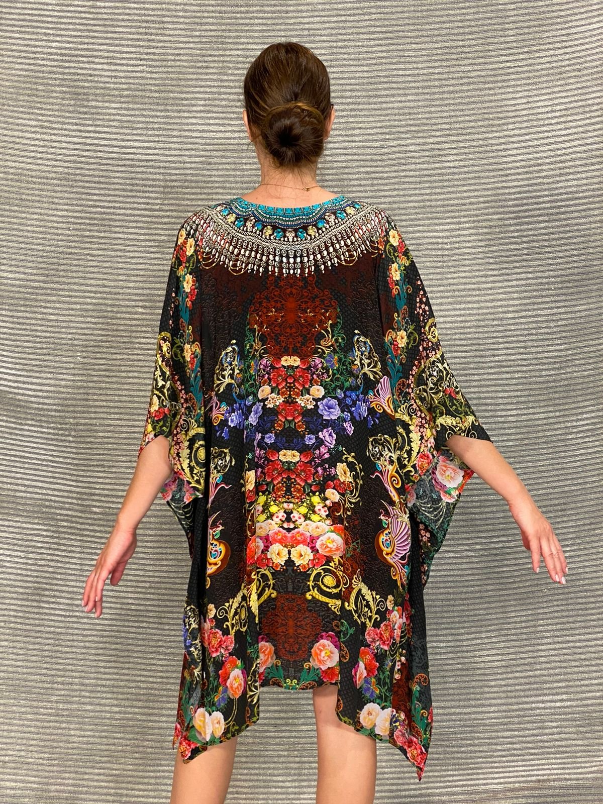 Silk Short Kaftan With Swarovski SK – 56